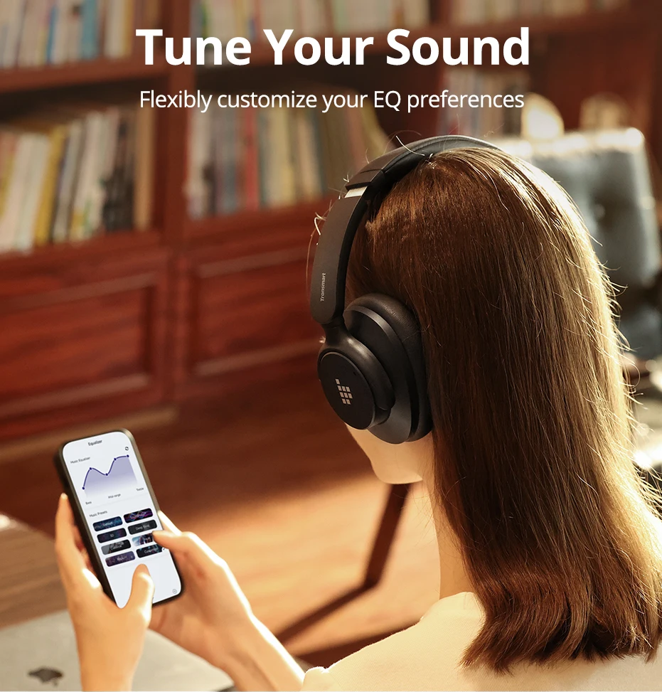Contrôlez l'égaliseur, les modes ANC, les touches tactiles depuis l'app. 5 profils sonores préréglés + EQ personnalisable. Mettez à jour le firmware pour de nouvelles fonctionnalités.